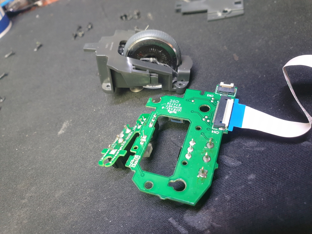 휠센서불량으로 휠센서교체수리 진행합니다. 휠센서불량은 휠팅김, 스크롤시 위아래로 잘 안움직이거나 아예 반응이 없는 경우 발생되는 현상이며 센서교체후 정상적인 사용이 가능합니다.