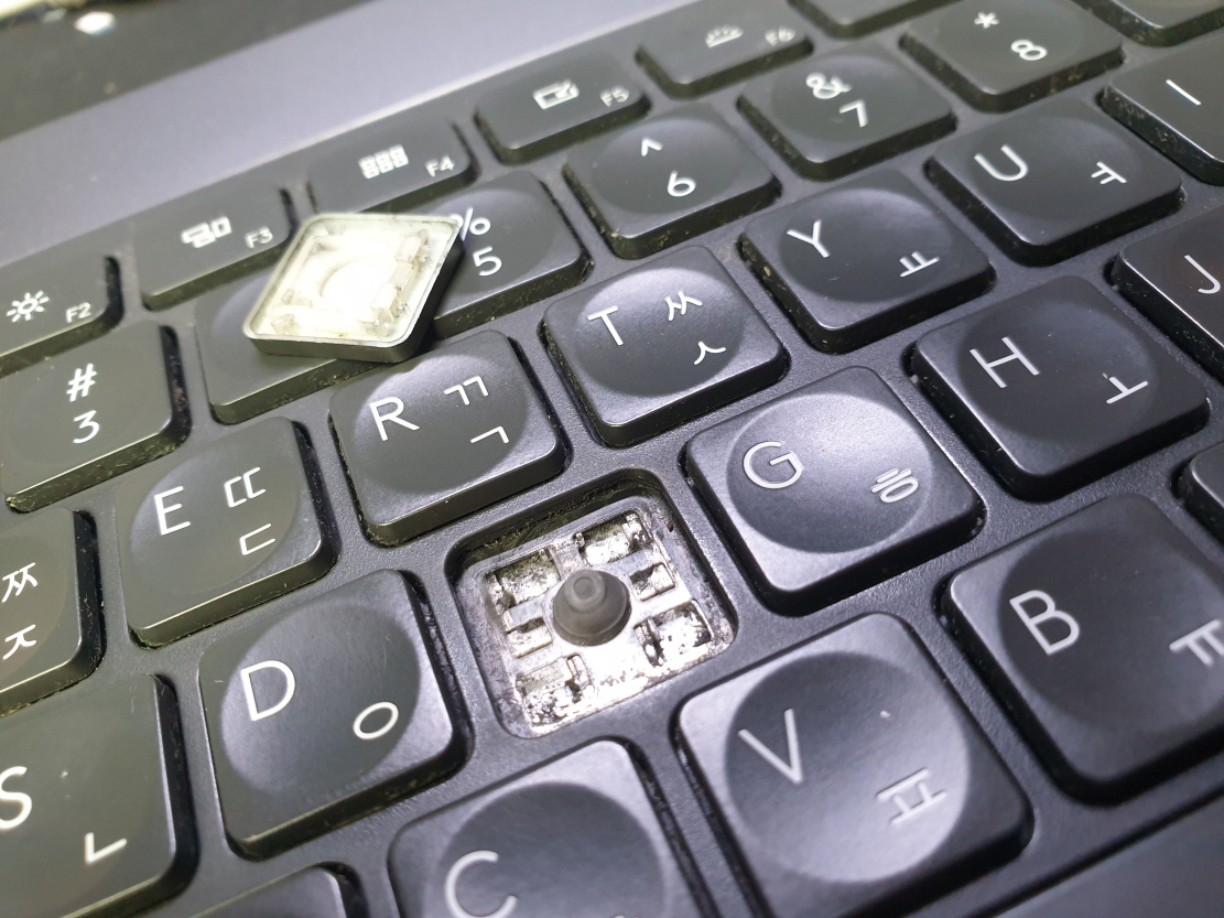 키캡 및 러버돔(고무)에 접착제 사용한 경우 수리가 안되며, 메인보드걸쇠부분이 파손되어 떨어져나가거나 훼손정도가 심한 경우가 아니면 수리가 가능합니다.
