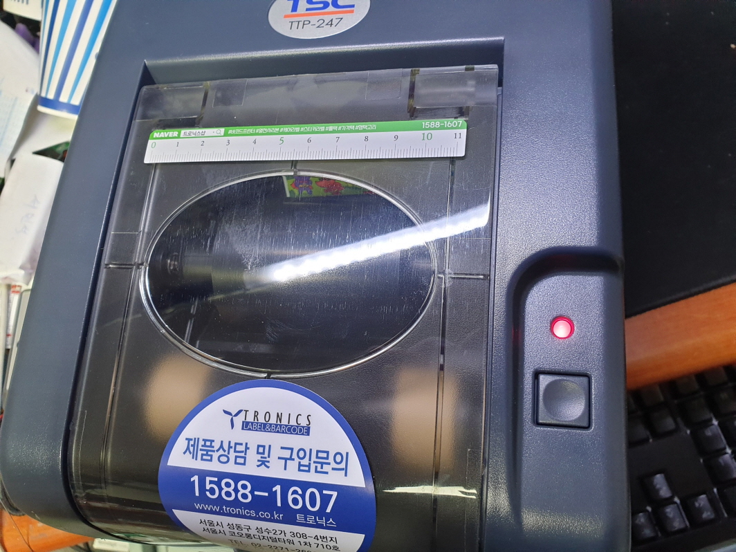 충남 청양군에서 빨간불 점멸 반복후 기계음 1~2초 작동안됨으로 TSC TTP-247 유통 라벨 송장 바코드 프린터수리
