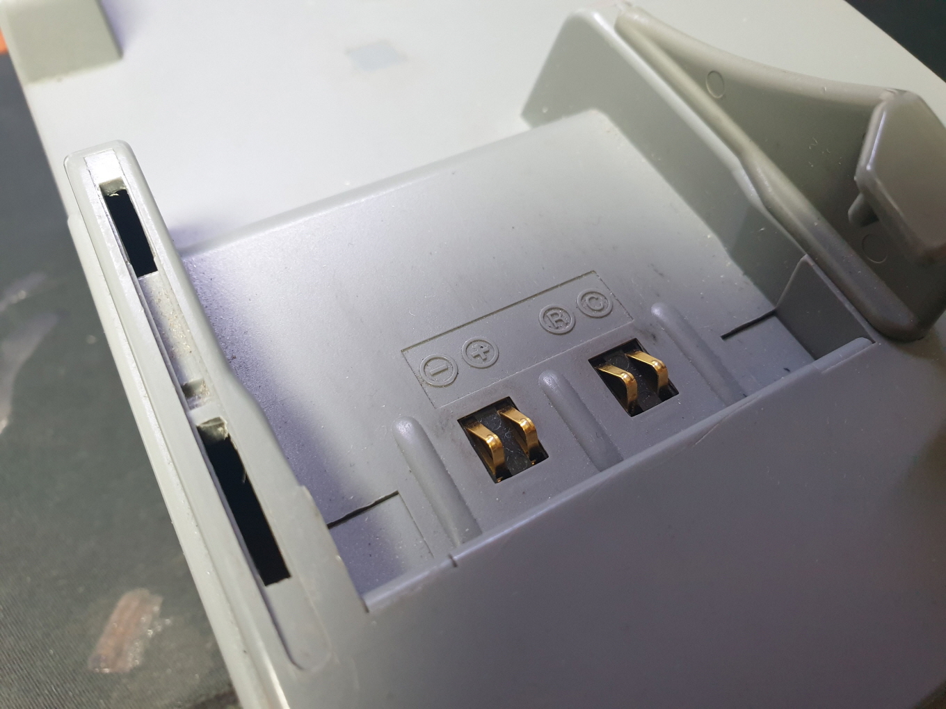 커넥터파손으로 케이블작업 진행합니다. 케이블작업후 동일하게 사용하시면됩니다. 핸드터미널거치시 양쪽으로 잡아주는 센터가 양쪽다 있는 상태에서 사용하세요...