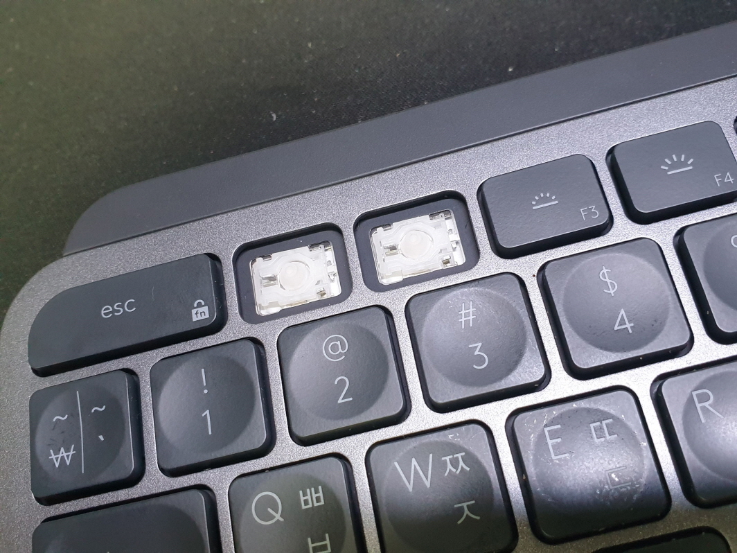 Logitech MX KEYS S 서울 성동구에서 보내주신 로지텍 키보드 펜타그래프 F1 F1 넘버패드8 키캡이 깨짐수리