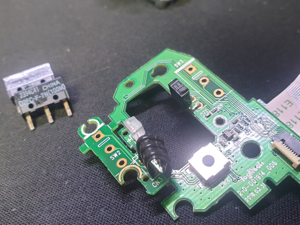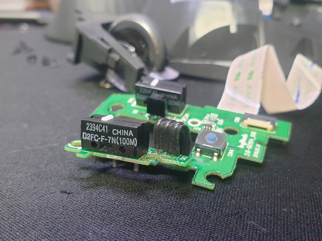왼쪽버튼 드래그풀리는 증상인 버튼내 스위치불량으로 새 스위치 D2FC-F-7N(100M) 좌우교체 수리 진행합니다.