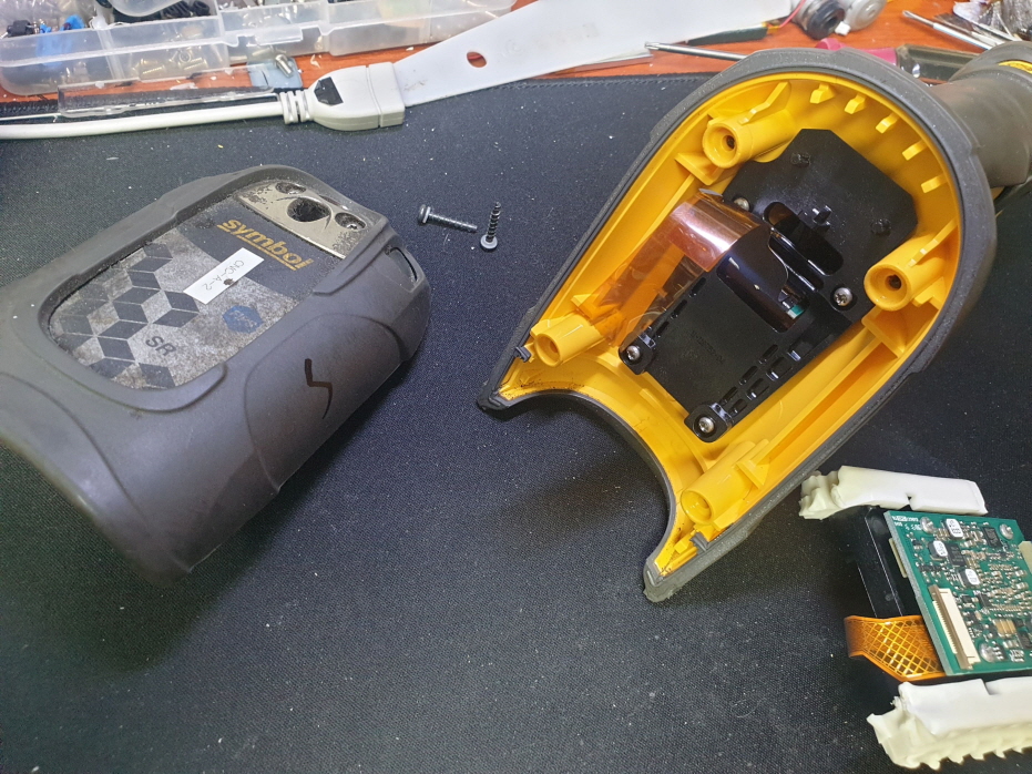 바코드스캔을 10번정도하면 스캐너가 꺼졌다 켜져다 반복되는 문제로 수리 진행합니다.