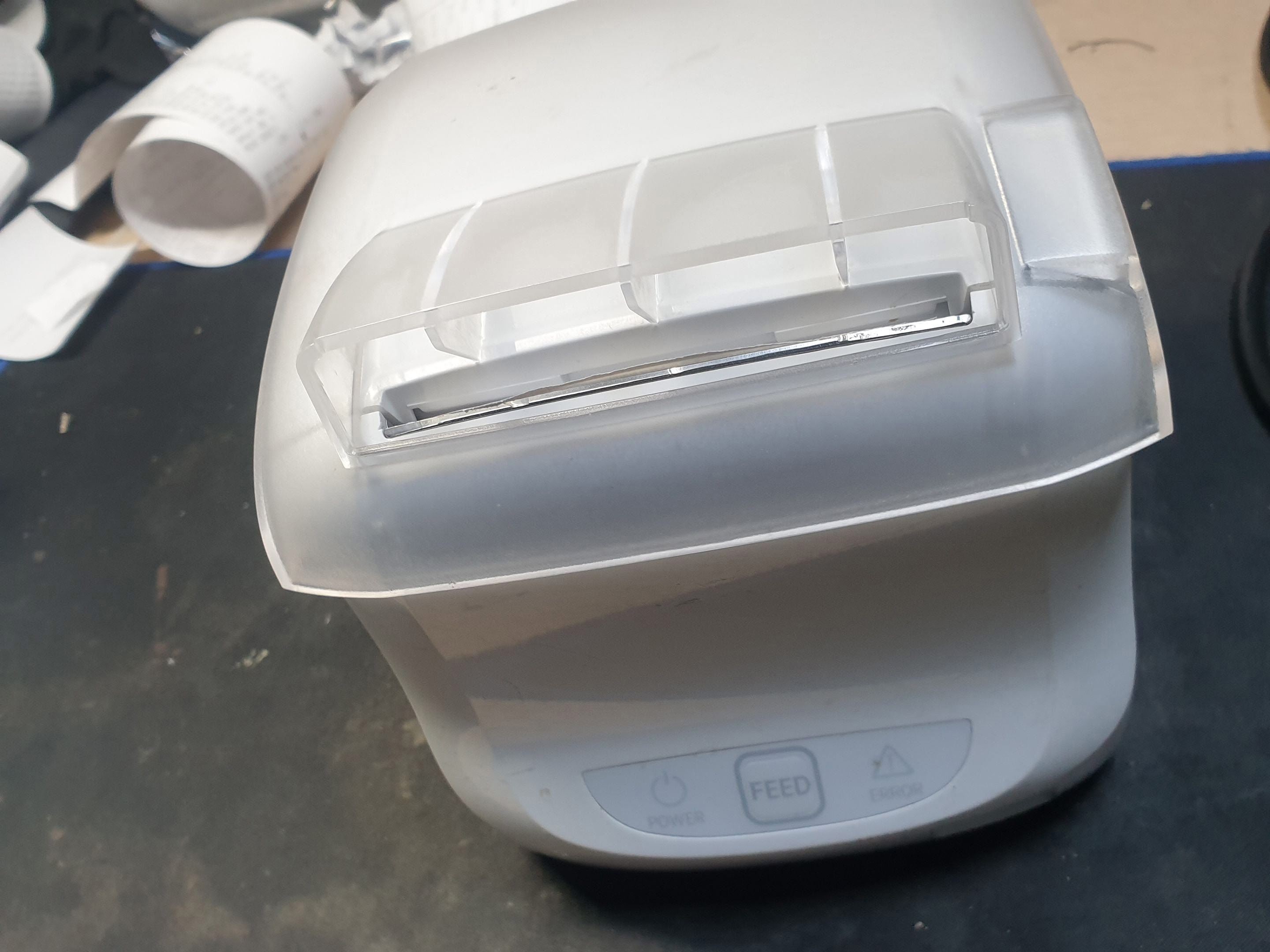 용지컷터시 뜯기쉽게 컷터가 1mm ~ 3mm정도 남기고 절단합니다. 제조사마다 남기는 정도는 차이가 있습니다...아예 절단이 안되거나 반만 절단되거나 용지만 나오고 절단이 안되고 그후로 먹통되는 증상 5mm정도 남기고 절단되는 경우 등 대부분 용지컷터불량이 많습니다. 컷터수리로 정상적인 사용이 가능합니다. 일부 제조사마다 단일커터 혹은 메카(인쇄헤드+커터+모터+커버센서+용지센서)로 구성됩니다.