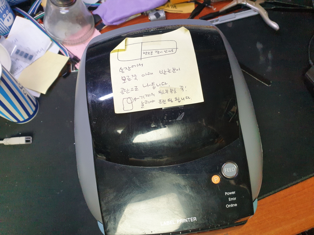 경기도 이천에서 오른쪽 하단부분 인쇄가 안됨으로 Sewoo LK-B30 유통 라벨 송장 바코드 프린터수리