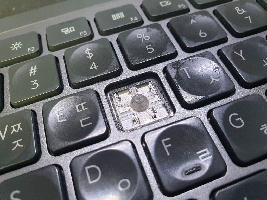 고객님께서 "키보드 R(ㄱ) 버튼 떨어짐 키보드를 흔들면 안에서 나사가 굴러다니는 소리가남" 으로 수리요청해주셨습니다.