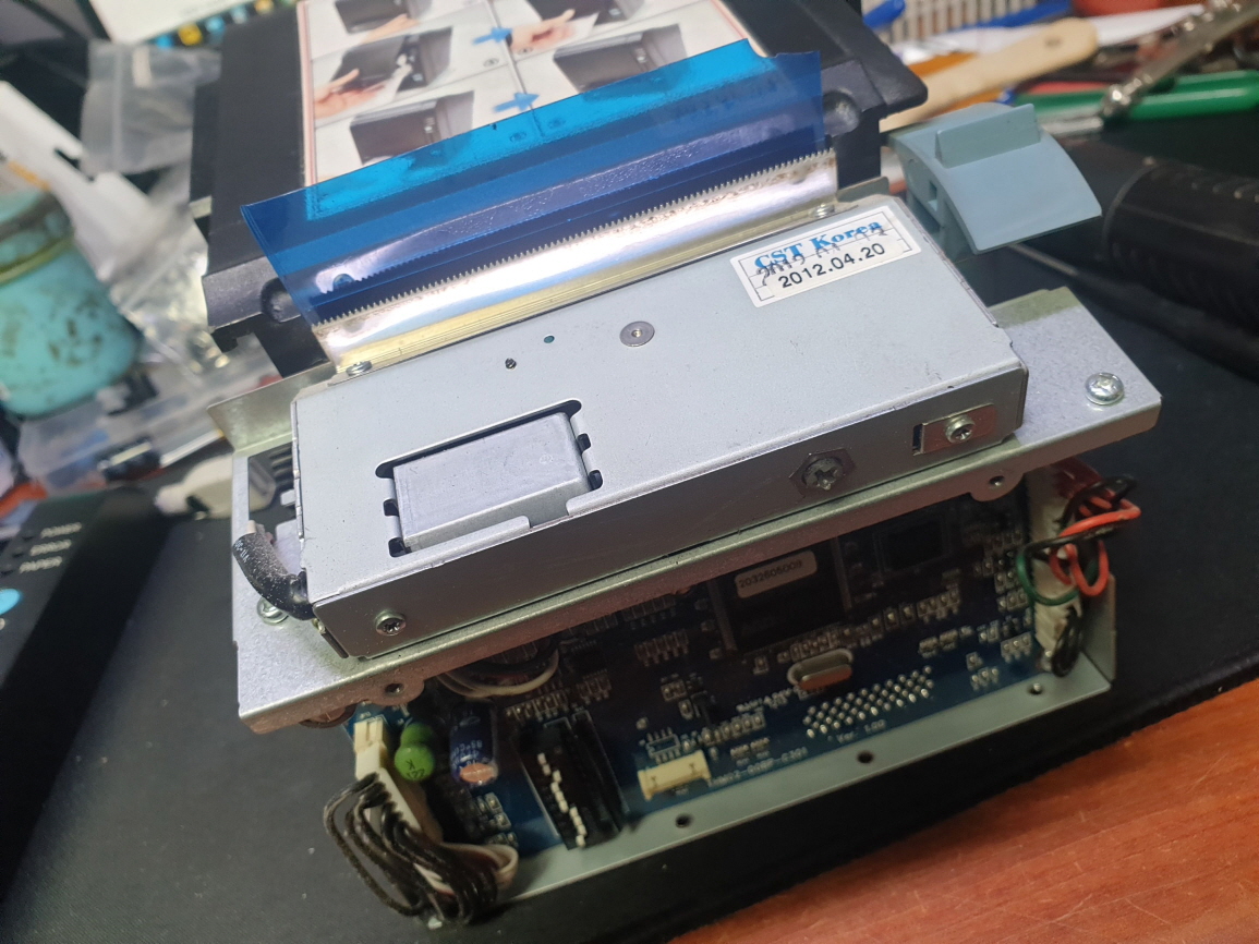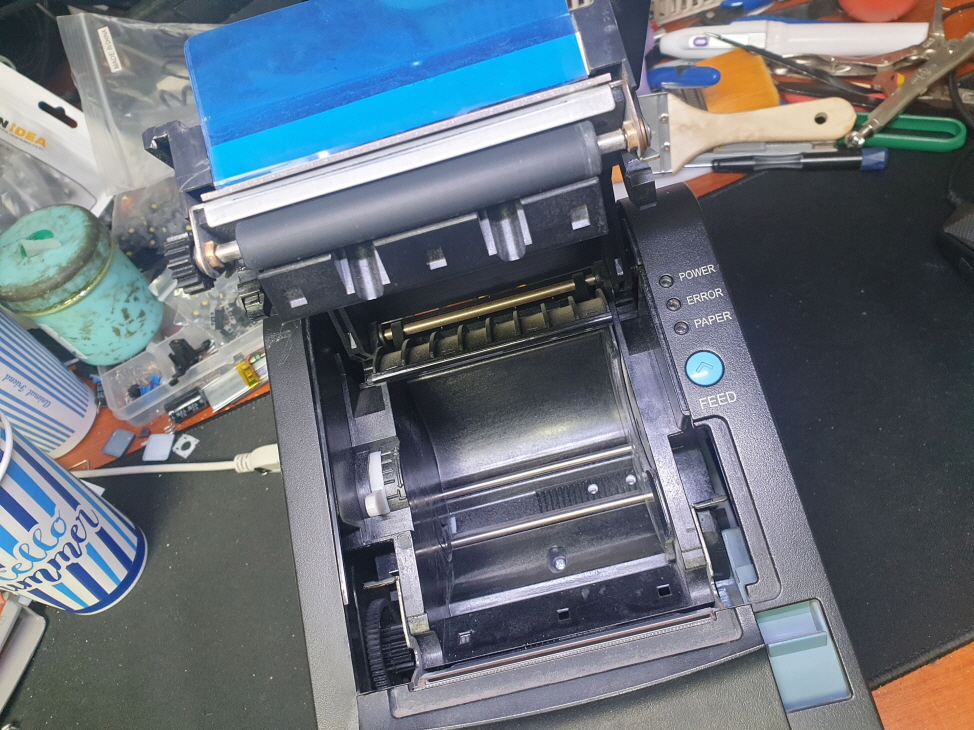 영수증 오토커터불량으로 인해 뚜껑이 열리지 않는 문제로 수리 진행합니다.