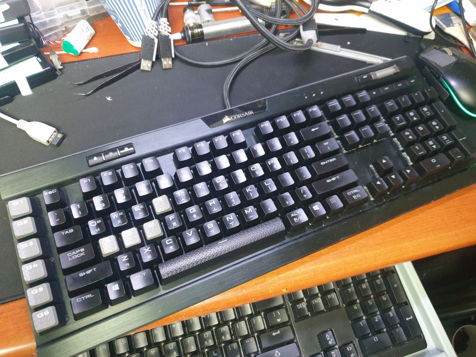 충북 단양군에서 커피유입으로인해 당분으로 인한 뻑뻑함발생으로 Corsair K95 RGB Platinum RGP0022 커세어키보드 해외직구 사설 수리 고장 AS