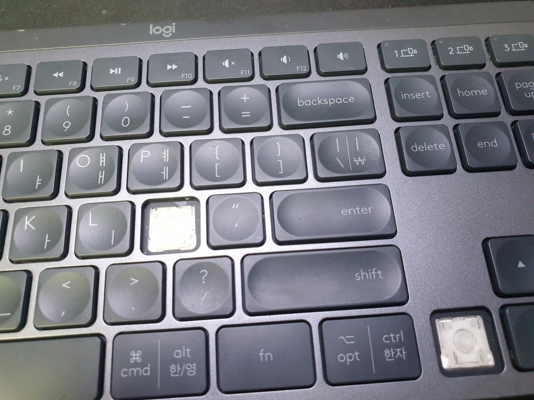 서울 동작구에서 CTRL 방향키(좌) DEL(.) 키 파손으로 Logitech MX KEYS S 로지텍 무선키보드 펜타그래프 병행수입 직구 사설 수리 고장 AS