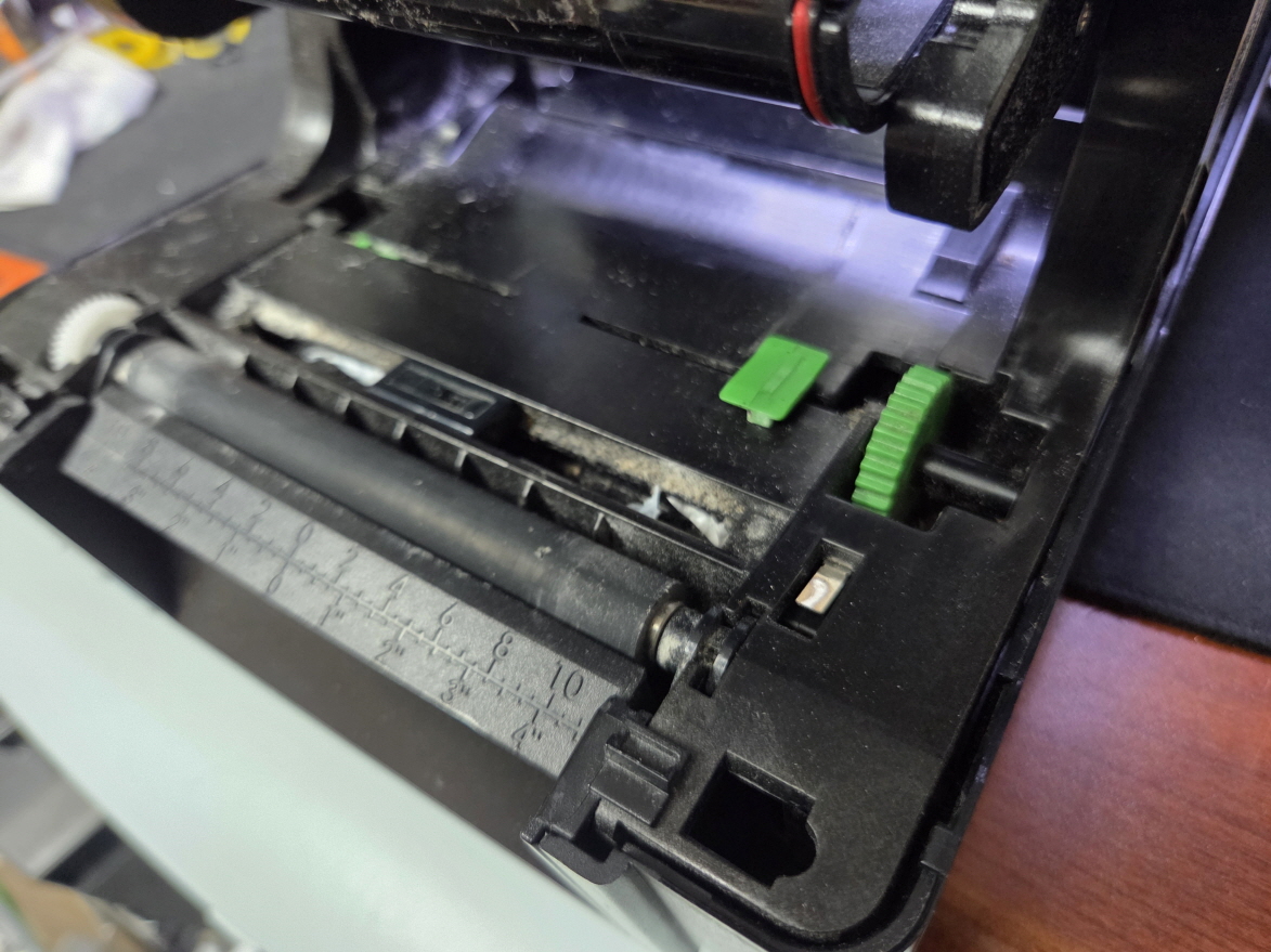 광주 광산구에서 용지잡는부분(초록색)깨짐으로 TSC TE210 유통 라벨 송장 바코드 프린터수리