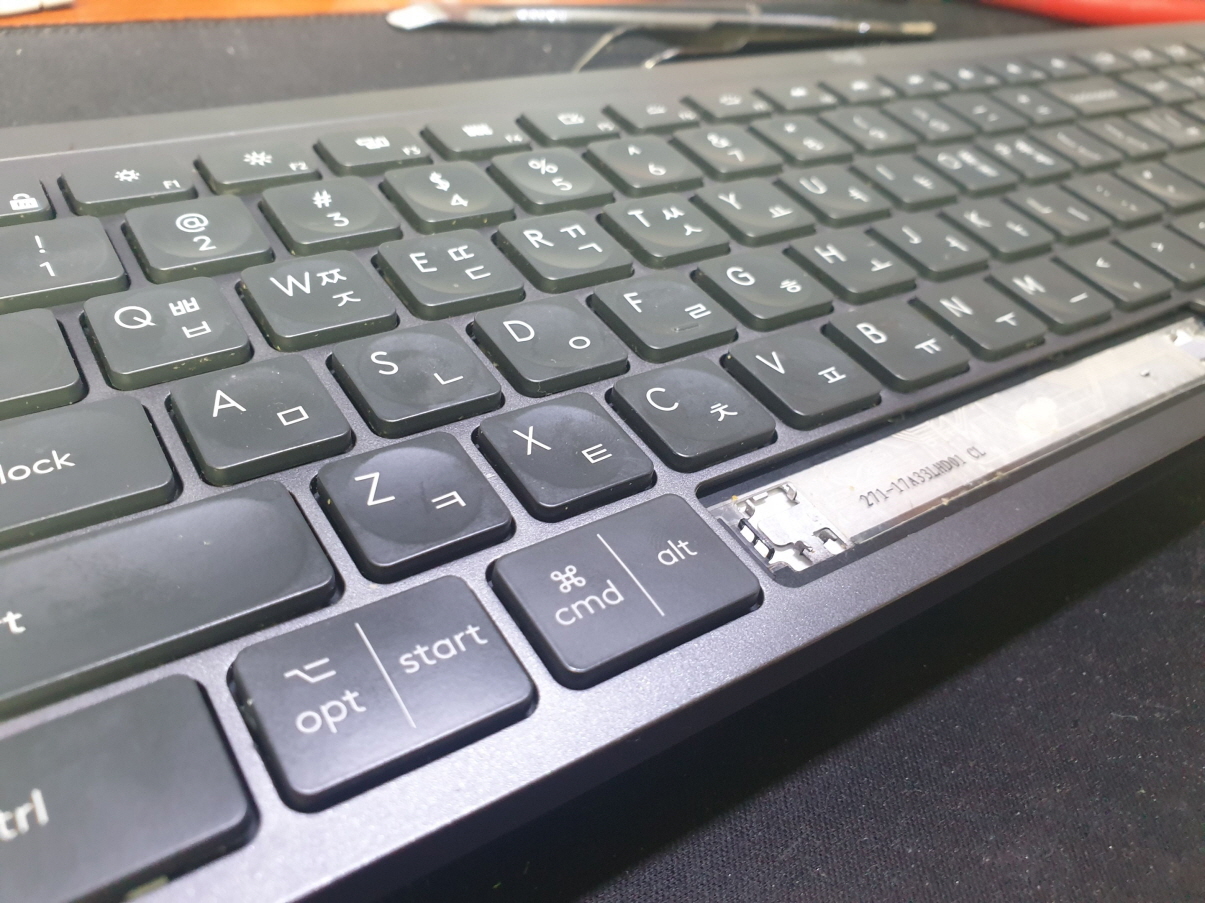 OPT ALT SPACE 키 불량으로 수리 진행합니다. 추가로 키보드 들거나 놓는경우 둔탁한 소리 원인 찾아 마무리합니다.
