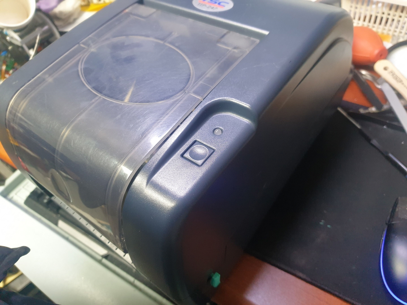 울산 울주군에서 라벨인쇄시 리본이 같이 딸려서 나옴으로 택배 입고된 TSC TTP-247 유통 라벨 송장 바코드 프린터수리