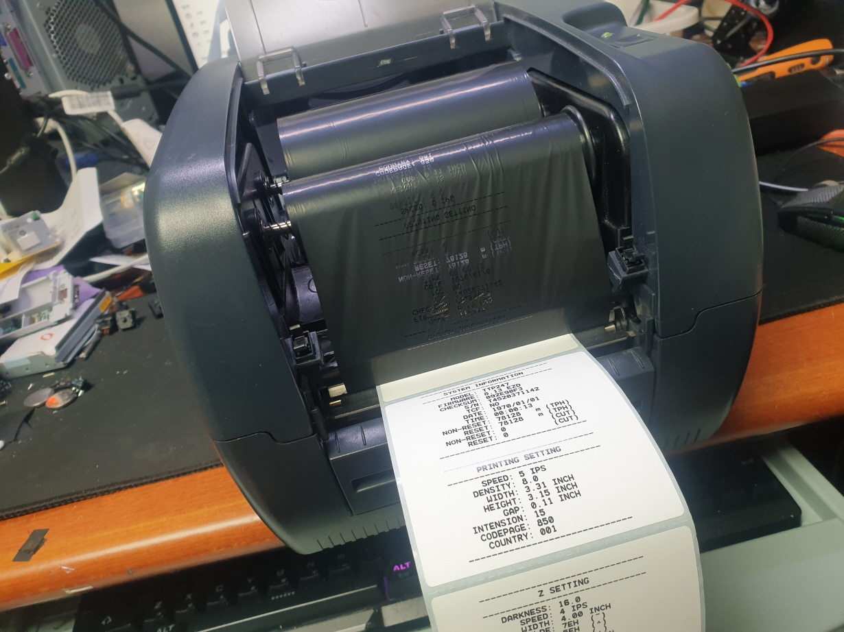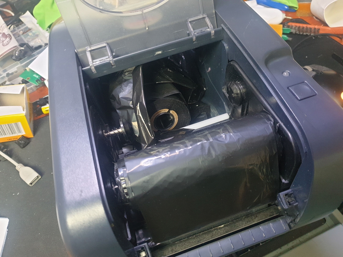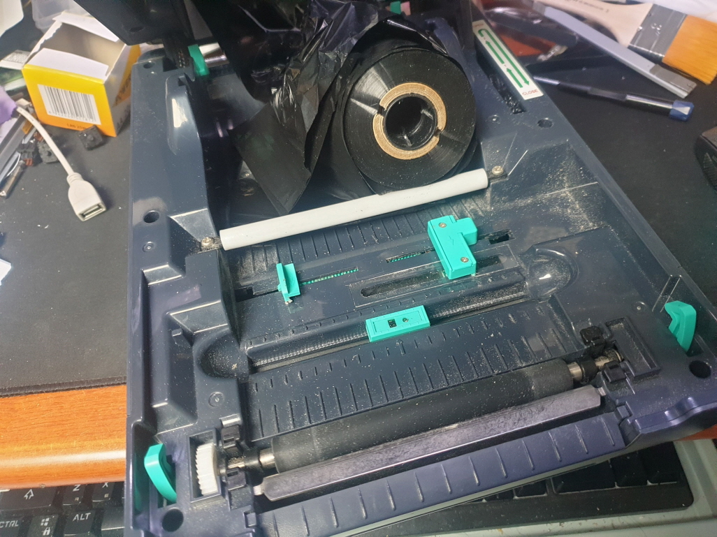 라벨인쇄시 리본(먹지)가 같이 딸려나오는 문제로 수리 진행합니다.