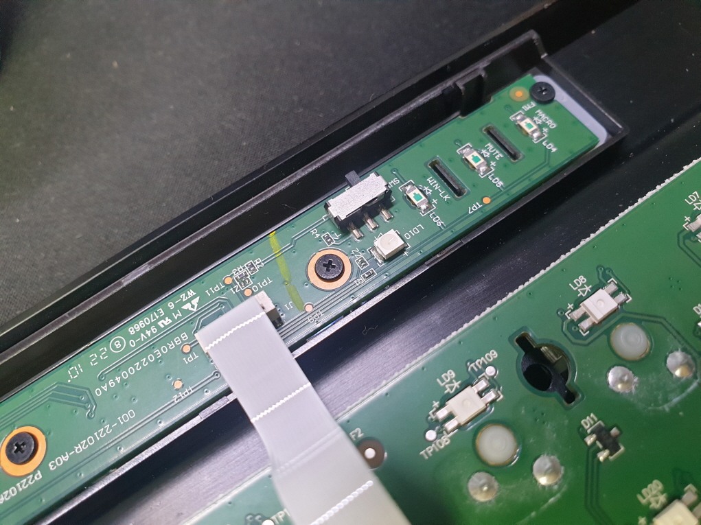 고객님 요청으로 축 스위치 교체 수리 진행합니다. 키보드 수리요청시 케이블제거하고 보내주세요 해당 사진처럼 꼽은 상태로 보내주시면 커넥터부분이 휘어져 문제가 발생될 수 있습니다.