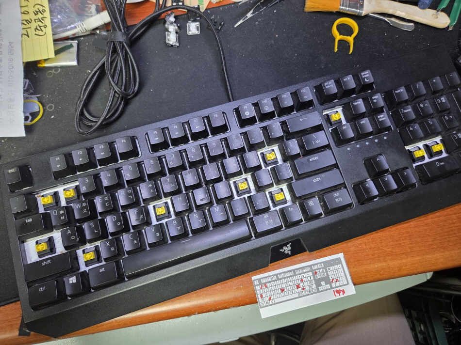 서울 영등포구에서 키 눌러지는데 잘 안됨 여러번눌림으로 택배입고된 Razer Blackwidow RZ03-0286 레이저키보드 해외직구 사설 수리 고장 AS