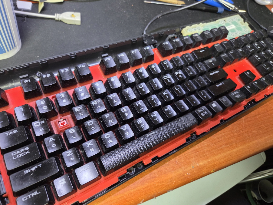 서울 강남구에서 버튼 가끔 누르고 있으면 중간에 끊기는 현상으로 택배입고된 Corsair K68 RGP0036 커세어키보드 해외직구 사설 수리 고장 AS