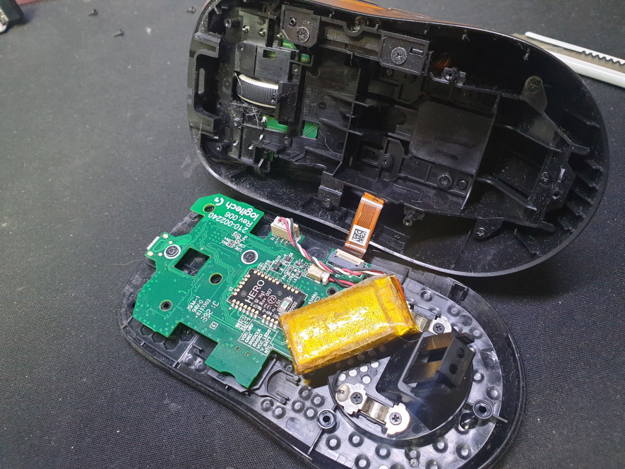 단순 스위치 불량으로 새 스위치 D2FC-F-7N(100M) 좌우교체 수리 진행합니다. 빠져있는 배터리는 바닥면으로 접착하여 붙여 놓았습니다... 해당 모델 사용시 마우스를 흔들경우 둔탁한 소리가 나며 뭔가 빠져 있는듯한 소리가 들리면 해당 배터리가 빠져있는 경우입니다...