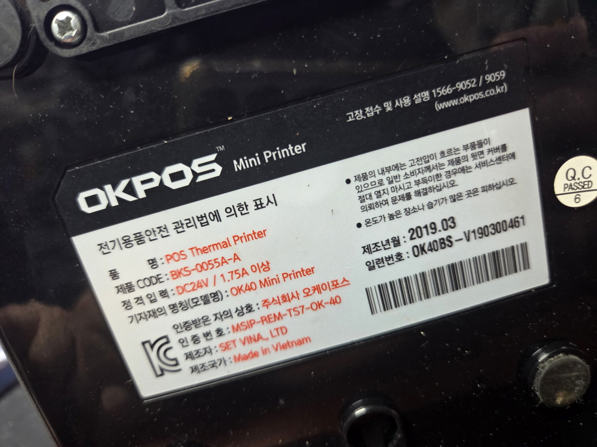 인천 남동구에서 뚜껑열림멘트나옴 빈용지계속나옴으로 택배 입고된 OKPOS OK40 포스 영수증 주방 포스 오케이포스프린터수리