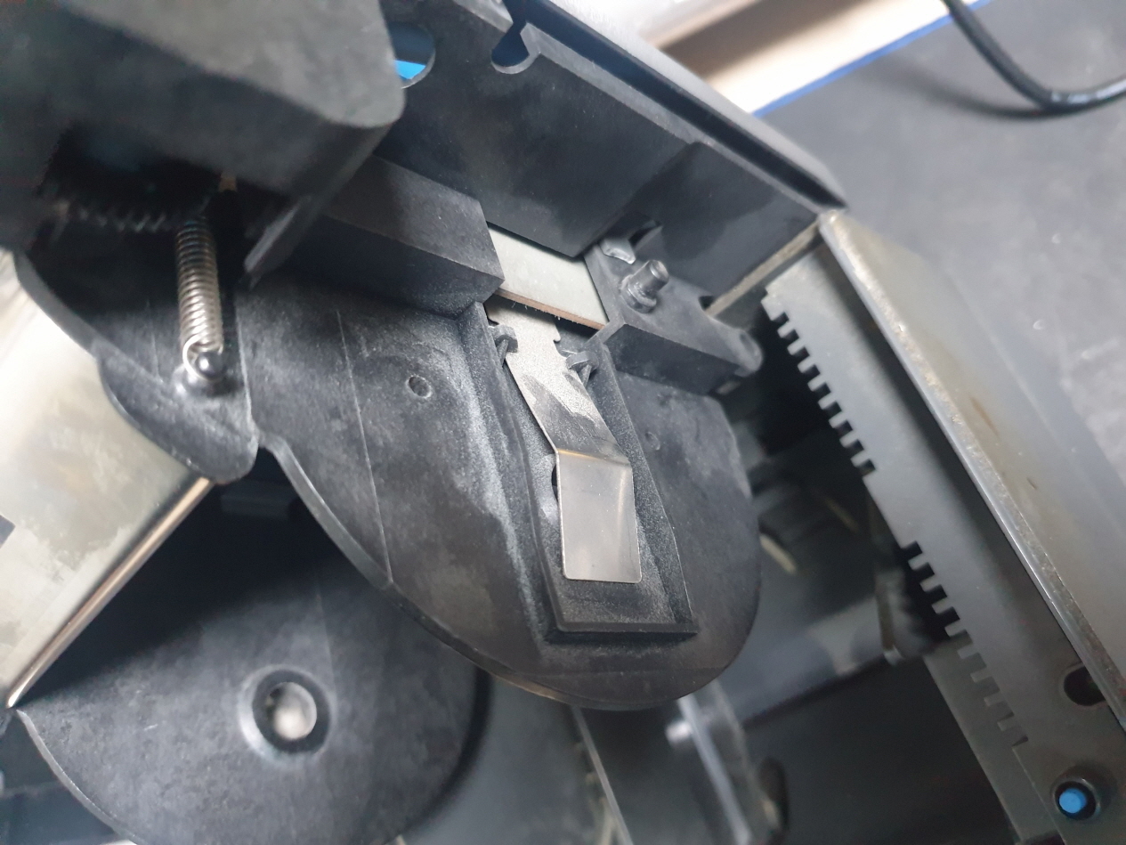 용지컷터시 뜯기쉽게 컷터가 1mm ~ 3mm정도 남기고 절단합니다. 제조사마다 남기는 정도는 차이가 있습니다...아예 절단이 안되거나 반만 절단되거나 용지만 나오고 절단이 안되고 그후로 먹통되는 증상 5mm정도 남기고 절단되는 경우 등 대부분 용지컷터불량이 많습니다. 컷터수리로 정상적인 사용이 가능합니다. 일부 제조사마다 단일커터 혹은 메카(인쇄헤드+커터+모터+커버센서+용지센서)로 구성됩니다.
