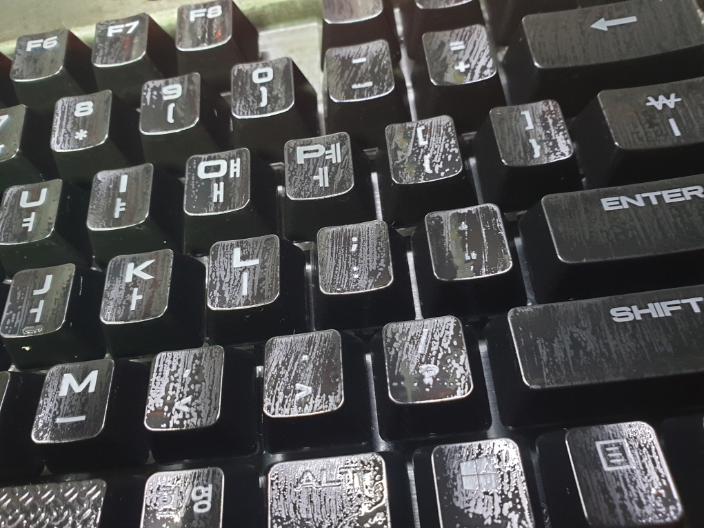 기계적으로 눌리지만 컴퓨터에선 눌리는 반응이 있는듯 없는듯하며 아예 안눌리거나 여러번 눌리는 증상은