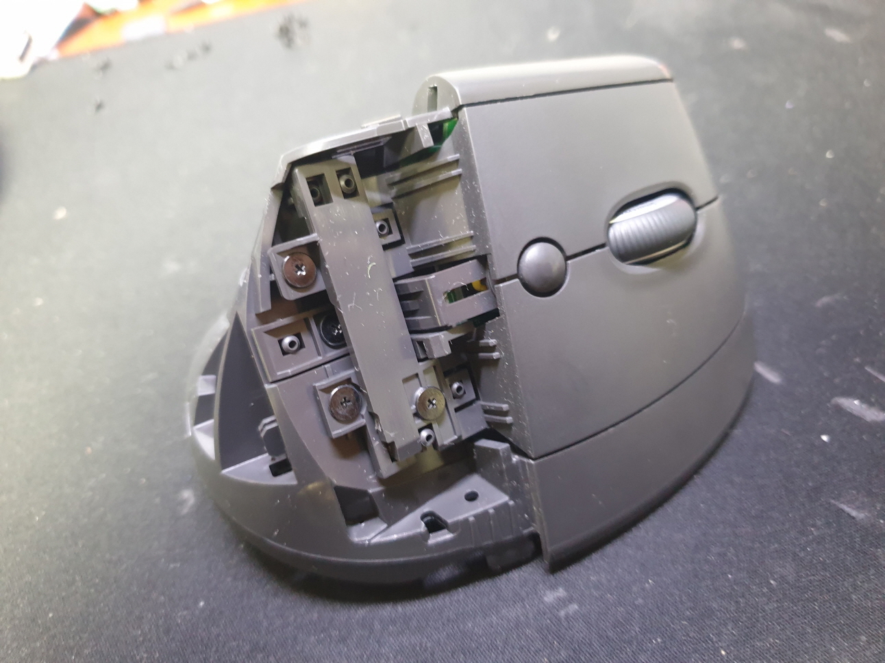 고객님께서 "왼쪽버튼 마모로인한 클릭 불규칙적미반응 휠 축?이 휘어진것인지 스크롤할 때 뻑뻑하게 잘 돌아가지지않음 " 으로 수리요청해주셨습니다.