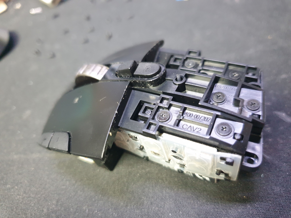 대부분 버튼내 스위치 불량이 많으며, 새 스위치 D2FC-F-7N(100M) 좌우교체 수리 진행합니다. 좌우교체는 기본적으로 사용하는 왼쪽오른쪽 버튼안의 스위치를 교체합니다.