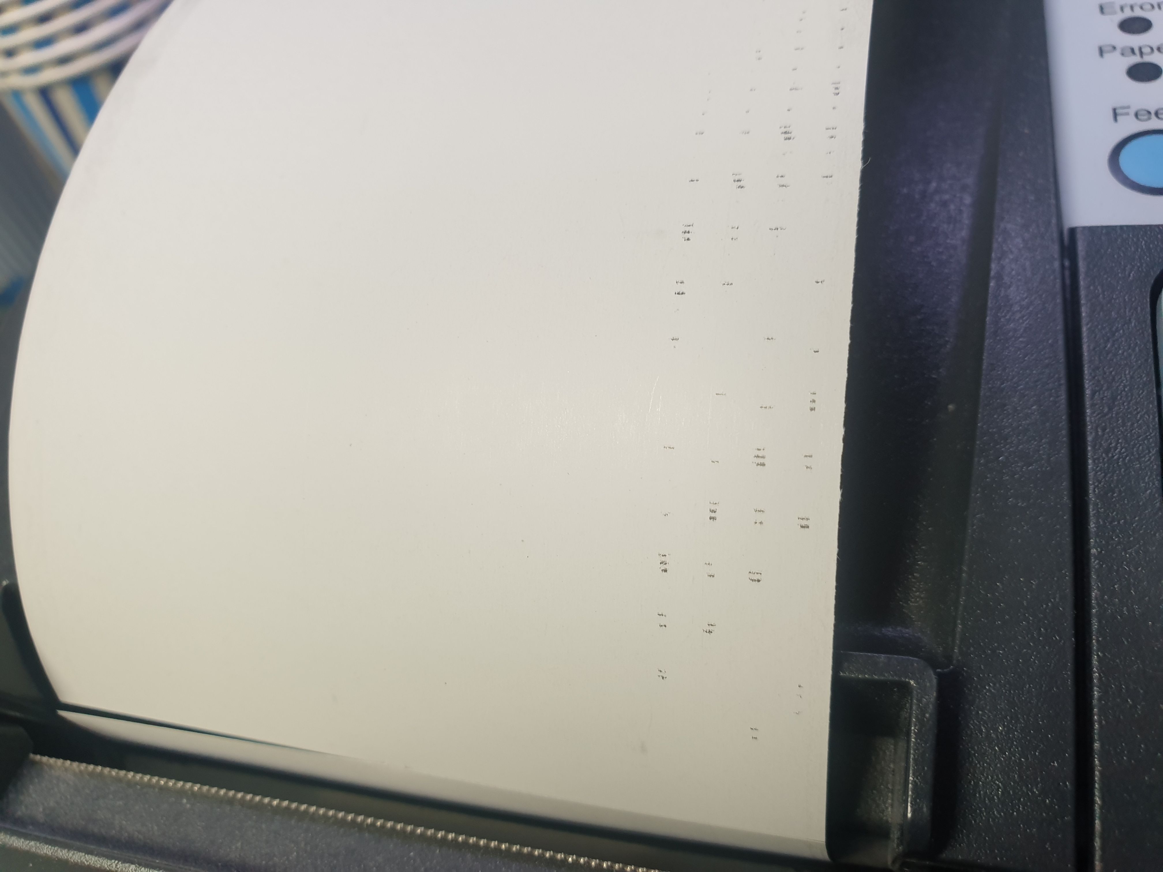 인쇄후 인쇄물이 흐리게 나오거나 일부 줄이가는듯이 인쇄되거나 일부분만 인쇄되고, 바코드출력후 바코드인식이 안되거나 반만 인쇄되는 문제, 백지출력 아예 인쇄가 안되고 용지만 나오는 증상 등 대부분 인쇄헤드 불량으로 헤드교체후 정상적인 사용이 가능합니다.