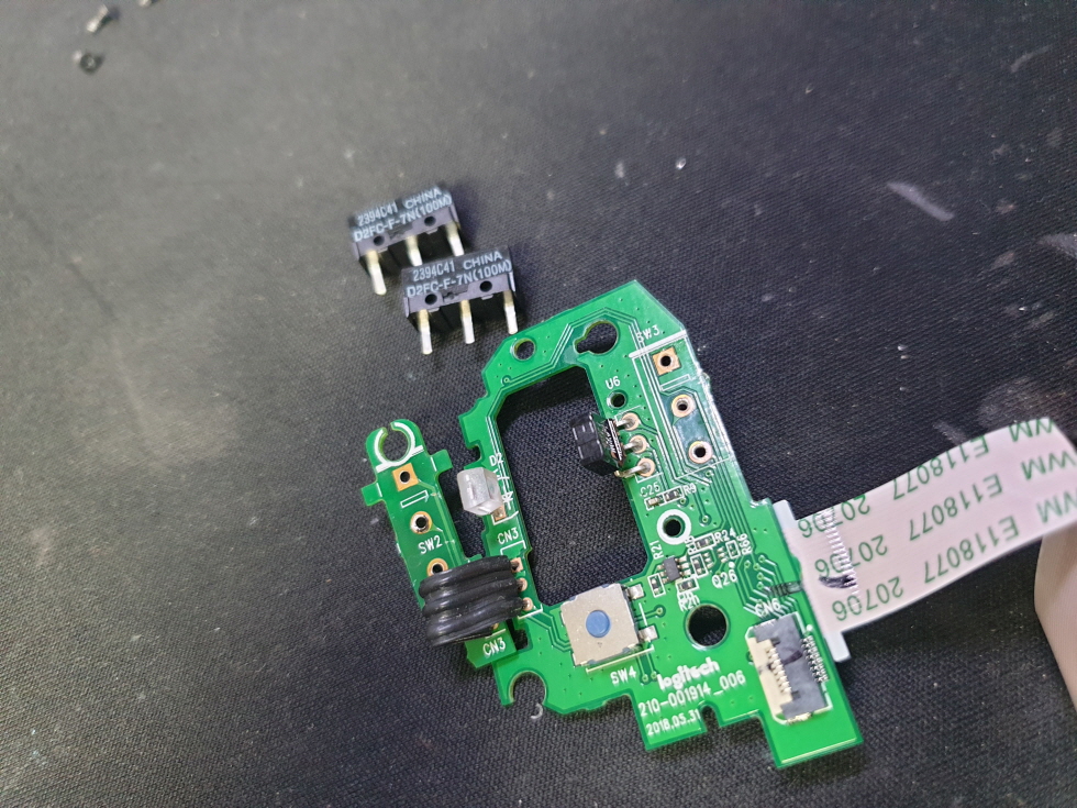 대부분 버튼내 스위치 불량이 많으며, 새 스위치 D2FC-F-7N(100M) 좌우교체 수리 진행합니다. 좌우교체는 기본적으로 사용하는 왼쪽오른쪽 버튼안의 스위치를 교체합니다. D2FC-F-7N(100M) 스위치는 네이버 검색하시면 가격 및 좋은스위치로 확인하실 수 있습니다.
