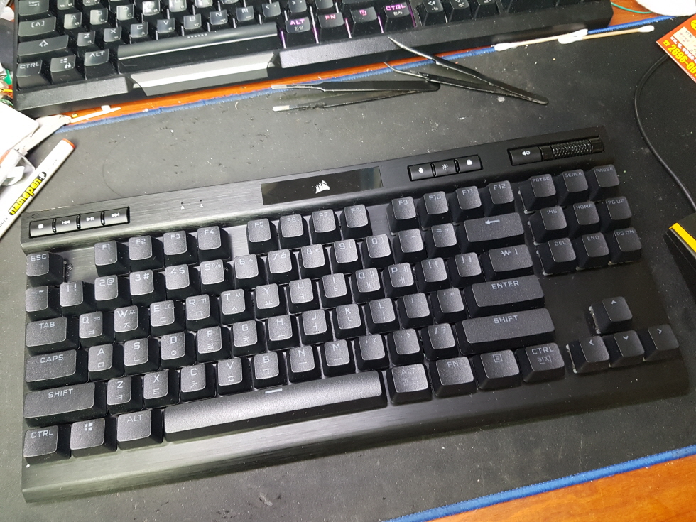 서울 양천구에서 침수로인한스위치뻑뻑함으로 Corsair k70 rgb TKL RGP0071 커세어키보드 병행수입 직구 사설 수리 고장 AS
