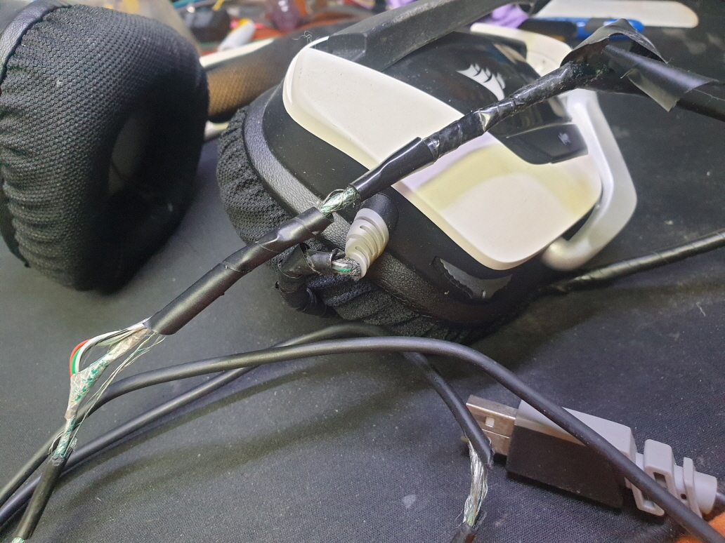 대구 동구에서 피복벗겨짐 접촉불량으로 Corsair VIOD ELITE 커세어보이드헤드셋 사설 수리 고장 AS