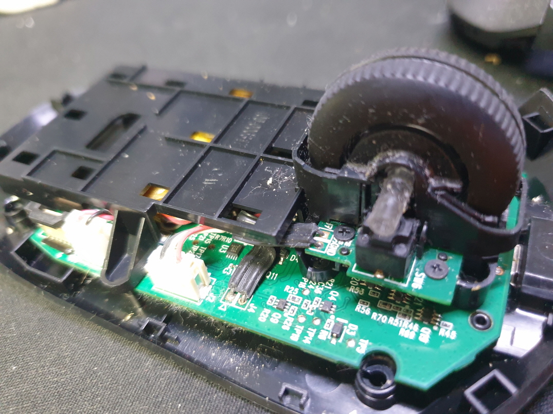휠센서불량으로 휠센서교체수리 진행합니다. 휠센서불량은 휠팅김, 스크롤시 위아래로 잘 안움직이거나 아예 반응이 없는 경우 발생되는 현상이며 센서교체후 정상적인 사용이 가능합니다.