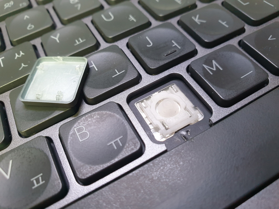 고객님께서 "N 키 힌지 메인보드걸쇠파손 걸쇠는 흡짐이 있으나 힌지 걸리는데이는 문제없을것같음 V키 사용시 문제는 없으나 일부분 파손된것같아 같이 바꾸고 싶음"으로 수리요청해주셨습니다.