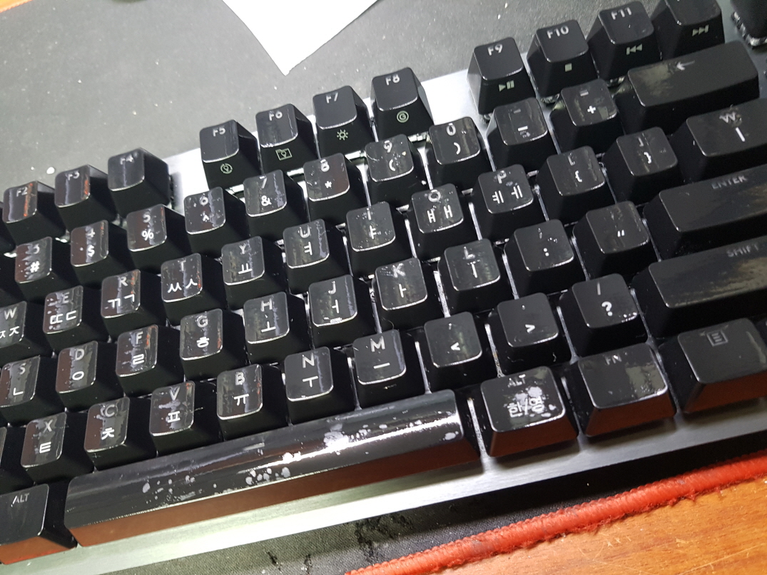 기계적으로 눌리지만 컴퓨터에선 눌리는 반응이 있는듯 없는듯하며 아예 안눌리거나 여러번 눌리는 증상은