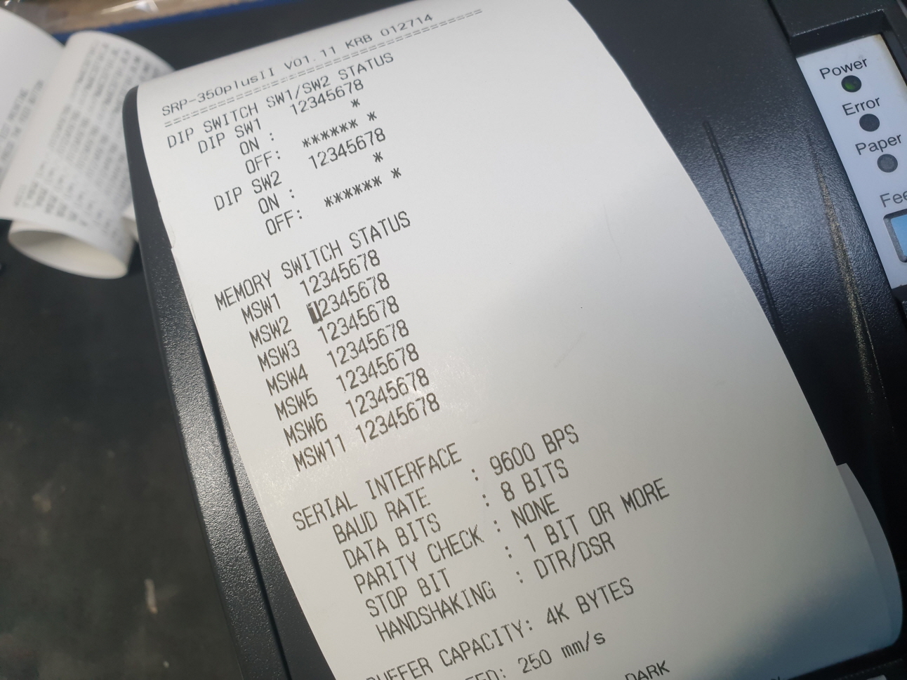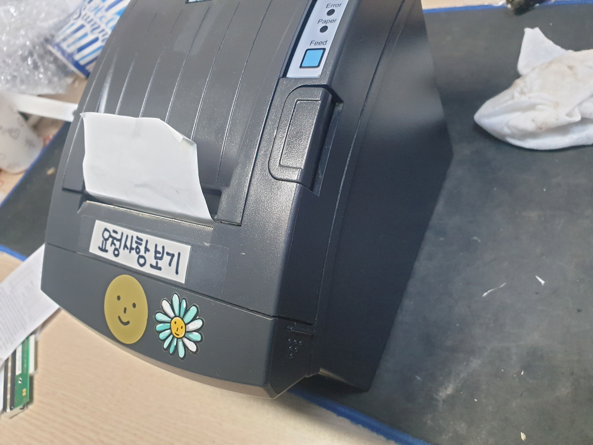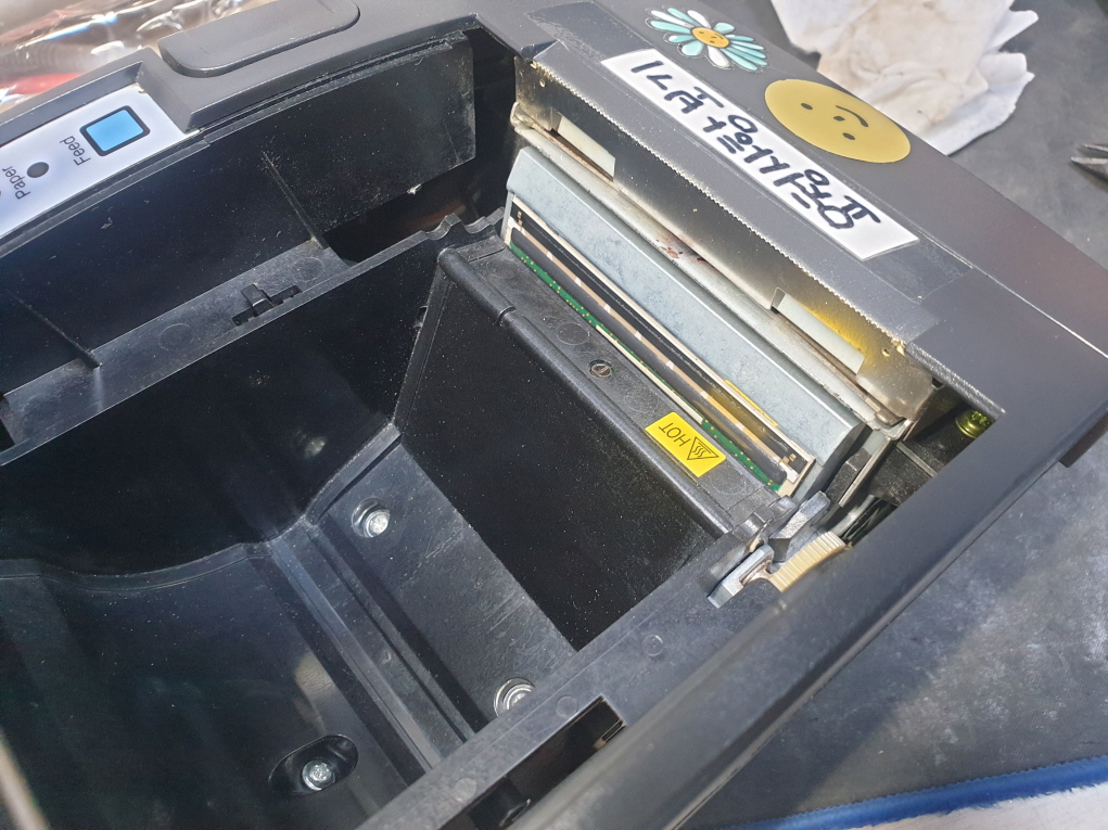 고객님께서 "갑자기 영수증출력이 안됨 빈영수증이 계속해서 쭉나올때도 있음 스위치를 껏다가켜면 첨부한 영수증이 나오고 영수증에(PAPER)빨간불이 켜짐 FEED 눌러도 반응이 없음"으로 수리요청해주셧습니다.