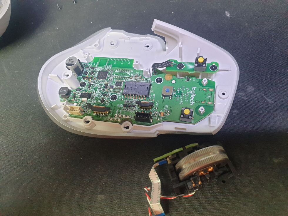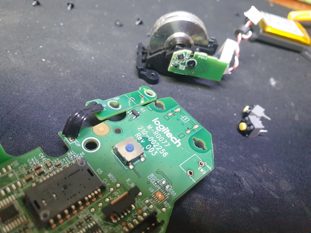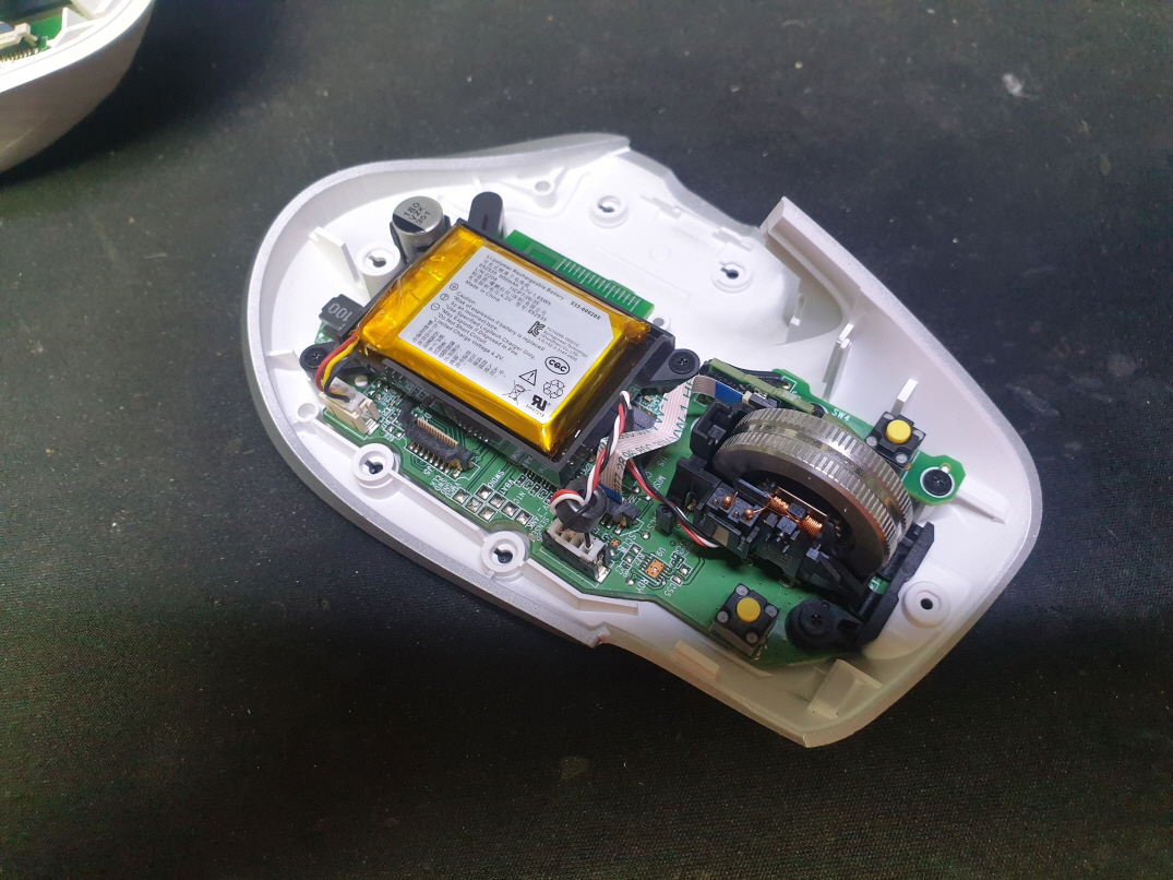 고객님께서 "좌우측클릭고장" 으로 수리요청해주셨습니다.단순 스위치 불량으로 새 스위치 카일 저소음옐로우스위치 좌우교체 수리 진행합니다. 휠은 정상적으로 작동합니다.