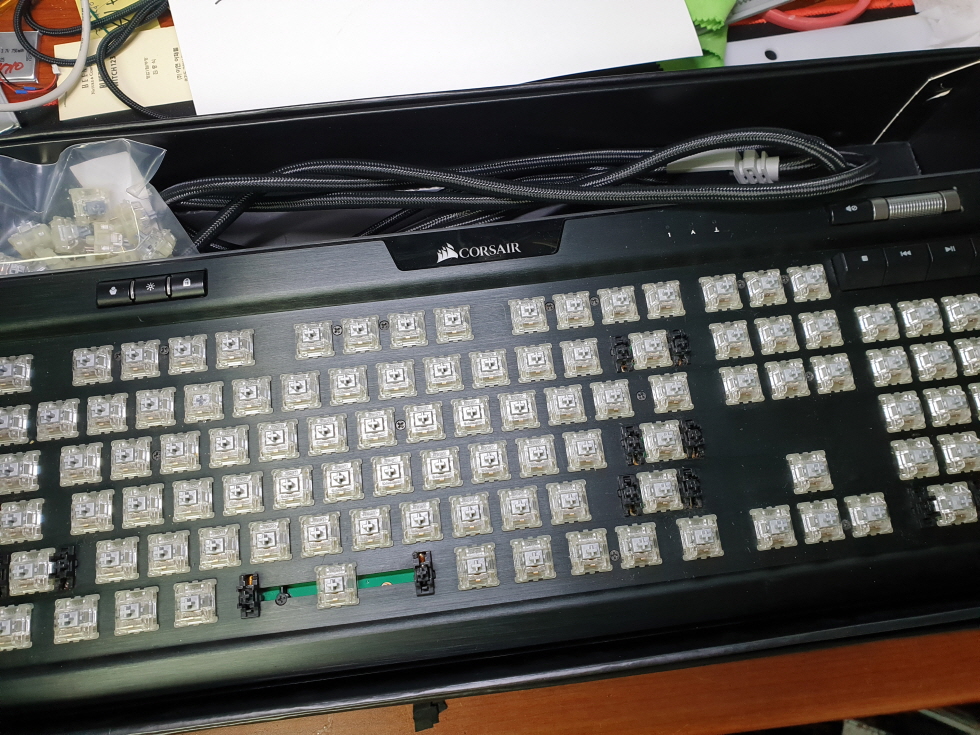 남동구 만수로에서 스위치 파손고장으로 Corsair K95 RGB RGP0022 커세어키보드 병행수입 직구 사설 수리 고장 AS 고객님께서 "스위치고장"으로 수리요청해주셨습니다.단순 스위치 파손불량으로 교체 수리 진행합니다. - 버튼내 스위치 파손 불량시기계적으로 눌리지만 컴퓨터에선 눌리는 반응이 있는듯 없는듯하며 아예 안눌리거나 여러번 눌리는 증상은대부분 스위치불량이 많습니다. 새 스위치로 교체되며 정상적인 사용이 가능합니다. 또한, 축파손 이물질 유입으로 스폰지같은 증상도 동일하게 새 스위치로 교체되어 정상적으로 사용이 가능합니다. - USB케이블 불량시사용중 컴퓨터 끊김, 컴퓨터에서 띵동 연결및끊김음소리, 컴퓨터에 제품인식이 안됨, 케이블를 건들면 연결이 됐다안됐다하는 증상등 대부분 케이블 불량으..
